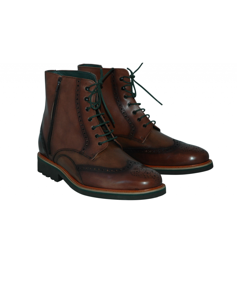 Casual brown height increasing side zip boots. Leather made and rubber sole.