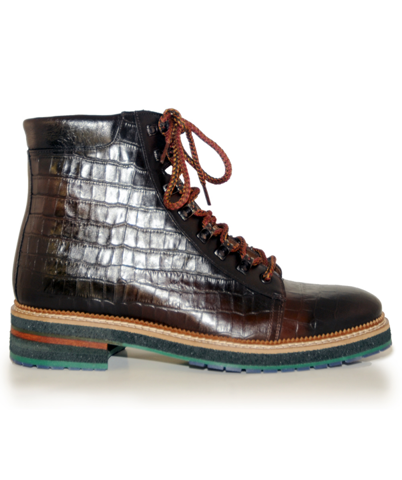 Stivaletti che aumenta l'altezza. Realizzato in pelle e suola in gomma.